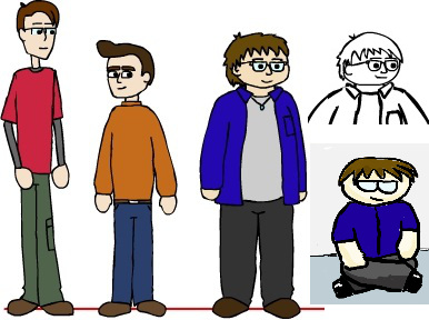 I'm not sure what it is that's putting me off. At first, I thought his head was a strange shape, that maybe it was too short and wide. So, I made it a bit taller, but it still isn't right. Maybe his shoulders were too wide, so I brought them in, along with his right leg, but that didn't seem right, either. I don't know, maybe it's just me. I also drew him a bit shorter than Greg, so I had to make him taller again.